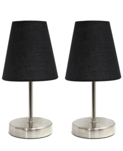 Simple Designs Sand Nickel Mini Basic Table Lamp With Fabric Shade 2 Pack Set In Black