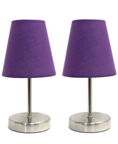 Simple Designs Sand Nickel Mini Basic Table Lamp With Fabric Shade 2 Pack Set In Purple
