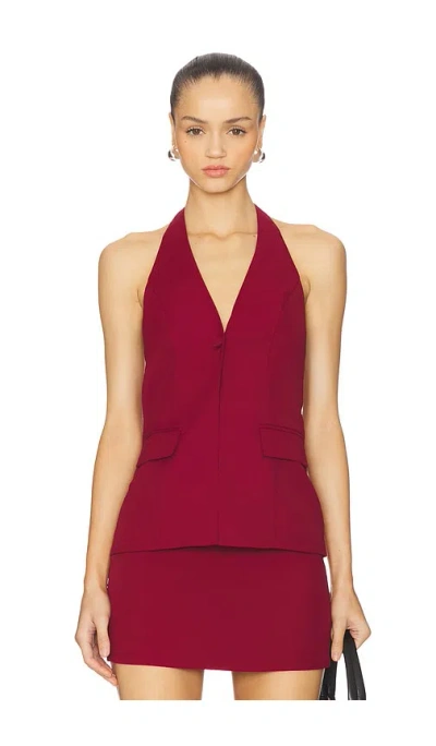 ALL THE WAYS Natalyna Vest in Burgundy. Size XS. Also in L, M, S, XL, XXS. ALL THE WAYS Natalyna Vest in Burgundy. Size L, M, S, XL, XXS. 100 % Polyester. Hand wash. Fully lined. Front button closure. Halter neck. Faux side pockets. AAYR-WS276. ATS245 S25. -1