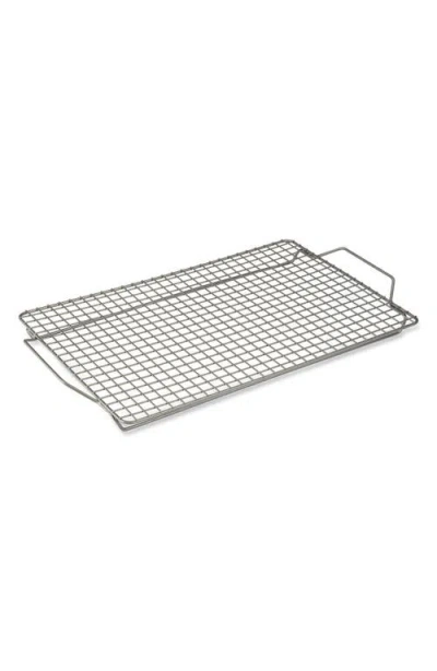 This All-Clad Pro-Release Nonstick Bakeware Cooling & Baking Rack allows proper airflow, letting excess moisture escape and ensuring your treats cool evenly for perfectly crisp, consistent results.What it does: The rack is made from warp-resistant, heavy-gauge aluminized steel that conducts heat evenly for perfect baking. A ceramic-reinforced coating is scratch- and stain-resistant, and makes releasing your scrumptious creations easy.Additional features: Large handles make it easier to grip the pan with oven mitts, while the lighter colored nonstick helps keep your bake from over browning.Compatible heat sources: Oven-safe up to 450°F.Sizing information: 18.75" x 11" x 1". Aluminized steel with ceramic-reinforced nonstick coating Dishwasher safe Imported
