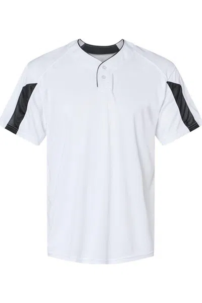 100% polyester moisture management/antimicrobial performance fabric. 100% polyester arrow mesh vented back for breathability. Self-fabric collar. Two-button placket with piping detail. Badger sport paneled shoulder for maximum movement. Contrasting arrow mesh sleeve and collar insert.