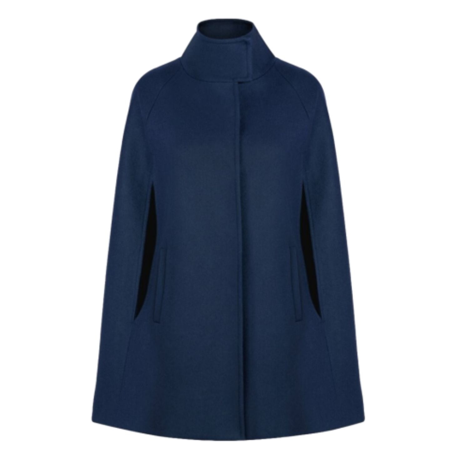 ALLORA Women's Single Breasted Wool Cashmere Cape Coat - Navy Blue