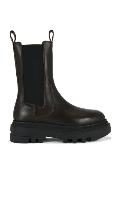 ALLSAINTS Alex Boot in Brown. - size 40 (also in 37, 38, 39, 41) ALLSAINTS Alex Boot in Brown. - size 40 (also in 37, 38, 39, 41) Leather and textile upper with EVA sole. Made in Portugal. Slip-on Chelsea boot style with elastic side panels. Leather footbed and lining. Pull tabs front and back for ease and attitude. Approx 63 mm / 2.48 inch heel Approx 8 inch shaft Opening measures approx 10.2 in circumference. ALLR-WZ183. W062FB. Founded in East London in 1994, AllSaints breaks through the noise to offer something different. Cult leather jackets and signature biker boots - it's what they do. Prints you weren't expecting, and accessories you'll keep coming back for. It's about innovation, about turning your back on the trends and making your own rules, a uniform without uniformity. AllSaints is an attitude, wear it your way.