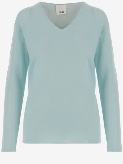 Long-sleeved crewneck jumper in softgreen cashmere with side slits. Ribbed neck, cuffs and hem. Regular fit. The model is 180cm tall and wears size S. Size nationality: US Composition: 100% Cashmere