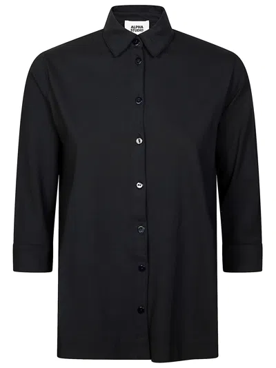 An elegant three-quarter sleeve shirt from Alpha Studio combines sophistication with comfort. The classic button-down design and pointed collar enhance its relaxed, slightly oversized silhouette, making it easy to style. The smooth fabric with a subtle sheen transforms casual wear into a refined statement piece, ideal for both day and night.- Three-quarter sleeves- Classic button-down design- Pointed collar- Relaxed, slightly oversized silhouette- Smooth fabric with subtle sheen- Versatile for day or night wear