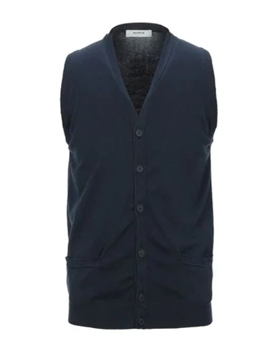 knitted, lightweight knit, no appliqués, solid color, v-neck, sleeveless, multipockets, contains non-textile parts of animal origin , Color: Slate blue , Size: 36