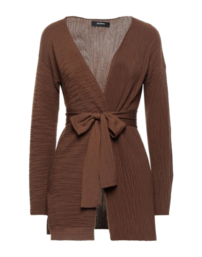 ALPHA STUDIO Cardigans. knitted, no appliqués, lightweight knit, deep neckline, solid color, long sleeves, multipockets. 100% Merino Wool