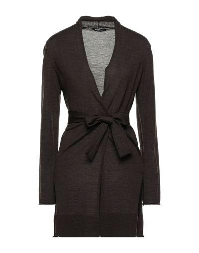 ALPHA STUDIO Cardigans. knitted, belt, lightweight knit, deep neckline, basic solid color, long sleeves, no pockets, side slit hemline. 100% Cotton