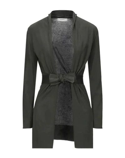 ALPHA STUDIO Cardigans. knitted, belt, lightweight knit, deep neckline, basic solid color, long sleeves, no pockets, side slit hemline. 100% Cotton