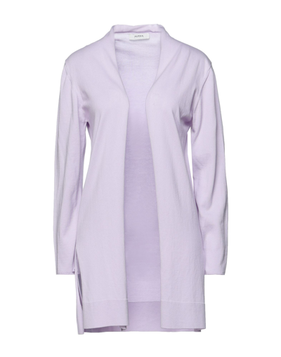 ALPHA STUDIO Cardigans. knitted, belt, lightweight knit, deep neckline, basic solid color, long sleeves, no pockets, side slit hemline. 100% Cotton