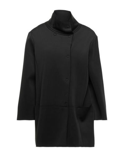 synthetic rubber material, no appliqués, solid color, single-breasted , turtleneck, long sleeves, snap buttons fastening, multipockets, unlined, stretch , Color: Black , Size: 10
