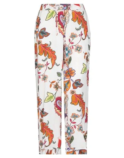 plain weave, floral design, mid rise, regular fit, tapered leg, drawstring closure, multipockets, cuffed hems, no appliqués , Color: White , Size: 14