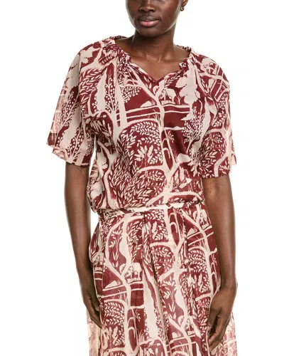Introducing the Alpha Studio Serafino Top, a stylish addition to your wardrobe. This blouse is made of 100% cotton and features a beautiful Henne color/pattern. The design details include an elastic collar and split neck, adding a unique touch to this top. It is approximately 26 inches from shoulder to hem and the model is 5'10 wearing a size 38. Hand wash recommended. Made in Italy. Add this versatile and chic top to your collection today!
