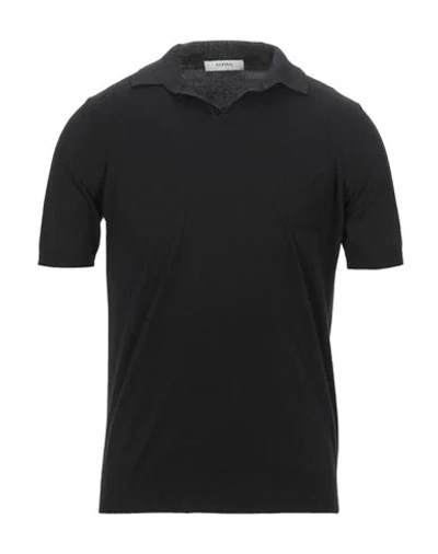 knitted, no appliqués, lightweight knit, polo collar, basic solid color, short sleeves, no pockets , Color: Black , Size: 44