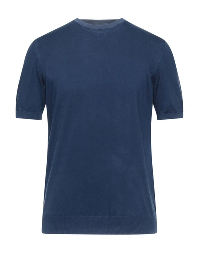 knitted, lightweight knit, no appliqués, solid color, round collar, short sleeves, no pockets , Color: Slate blue , Size: 40
