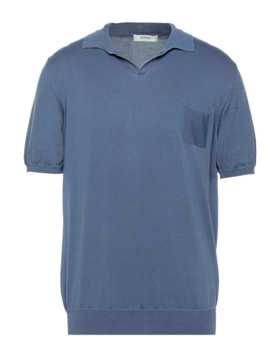 knitted, no appliqués, lightweight knit, polo collar, basic solid color, short sleeves, no pockets , Color: Slate blue , Size: 48