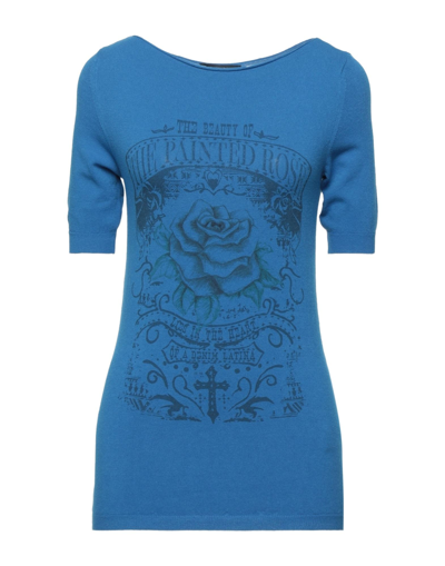 knitted, lightweight knit, brand logo, multicolor pattern, round collar, short sleeves, no pockets, stretch , Color: Blue , Size: L