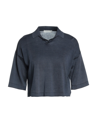 contains non-textile parts of animal origin, knitted, no appliqués, solid color, polo collar, short sleeves, no pockets, lightweight knit , Color: Midnight blue , Size: 8