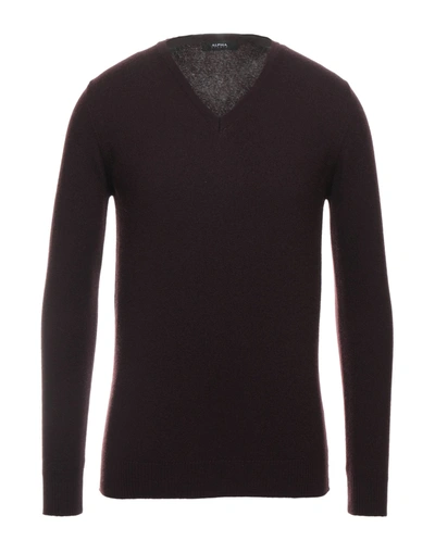 ALPHA STUDIO Sweaters. knitted, no appliqués, lightweight knit, v-neck, solid color, long sleeves, no pockets. 100% Merino Wool