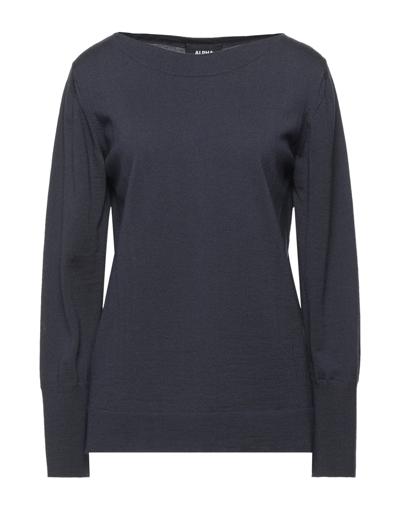 ALPHA STUDIO Sweaters. knitted, medium-weight knit, no appliqués, solid color, wide neckline, long sleeves, no pockets. 100% Wool