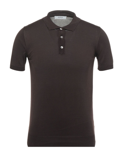 ALPHA STUDIO Sweaters. knitted, no appliqués, solid color, polo collar, lightweight sweater, short sleeves, front closure, button closing, no pockets, contains non-textile parts of animal origin. 100% Cotton