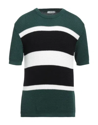 knitted, lightweight knit, no appliqués, stripes, round collar, short sleeves, no pockets , Color: Dark green , Size: 38