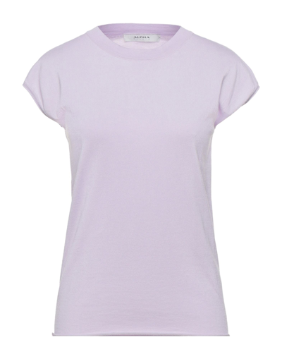 ALPHA STUDIO Sweaters. knitted, lightweight knit, no appliqués, round collar, short sleeves, no pockets, solid color. 100% Cotton