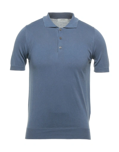 ALPHA STUDIO Sweaters. knitted, no appliqués, lightweight knit, polo collar, basic solid color, short sleeves, front closure, button closing, no pockets. 100% Cotton