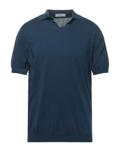 ALPHA STUDIO Sweaters. knitted, lightweight knit, no appliqués, polo collar, short sleeves, no pockets, solid color. 100% Cotton
