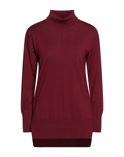 knitted, lightweight knit, no appliqués, solid color, turtleneck, long sleeves, no pockets, side slit hemline , Color: Burgundy , Size: 8