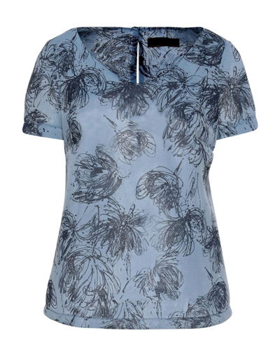 tulle, no appliqués, solid color with print, round collar, short sleeves, no pockets, 1 button, stretch , Color: Slate blue , Size: 10