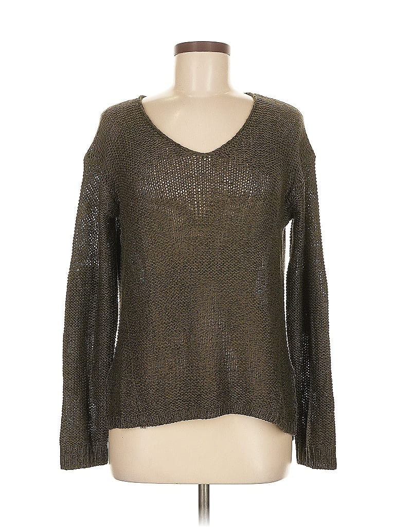 Alya Pullover Sweater, Size: Medium. Item Details: Brown, Metallic Pattern, V Neck, Long Sleeve, Glitter, Women's Tops, Acrylic/Cotton
