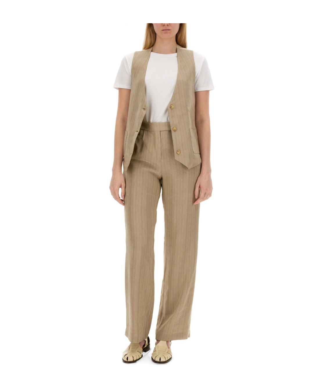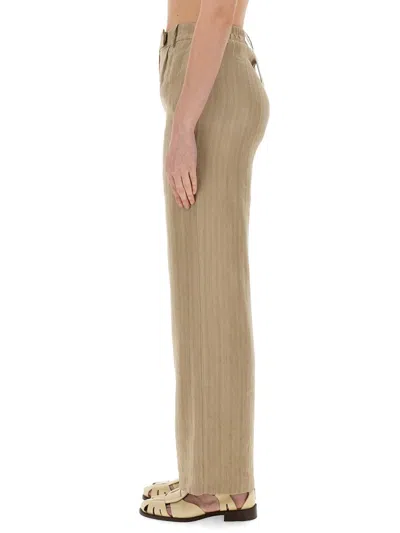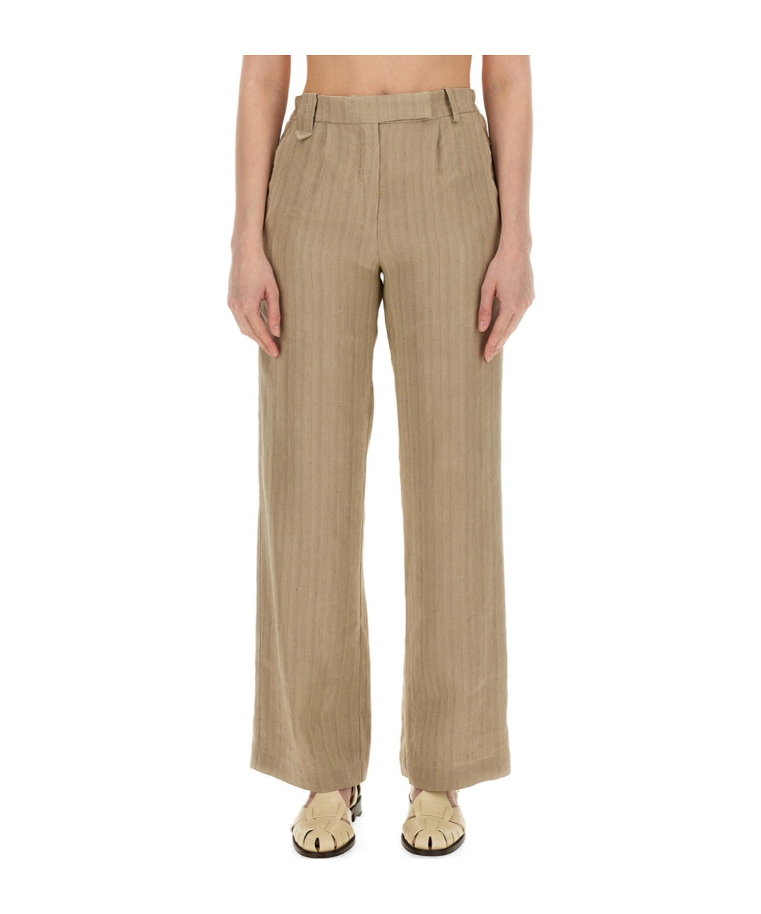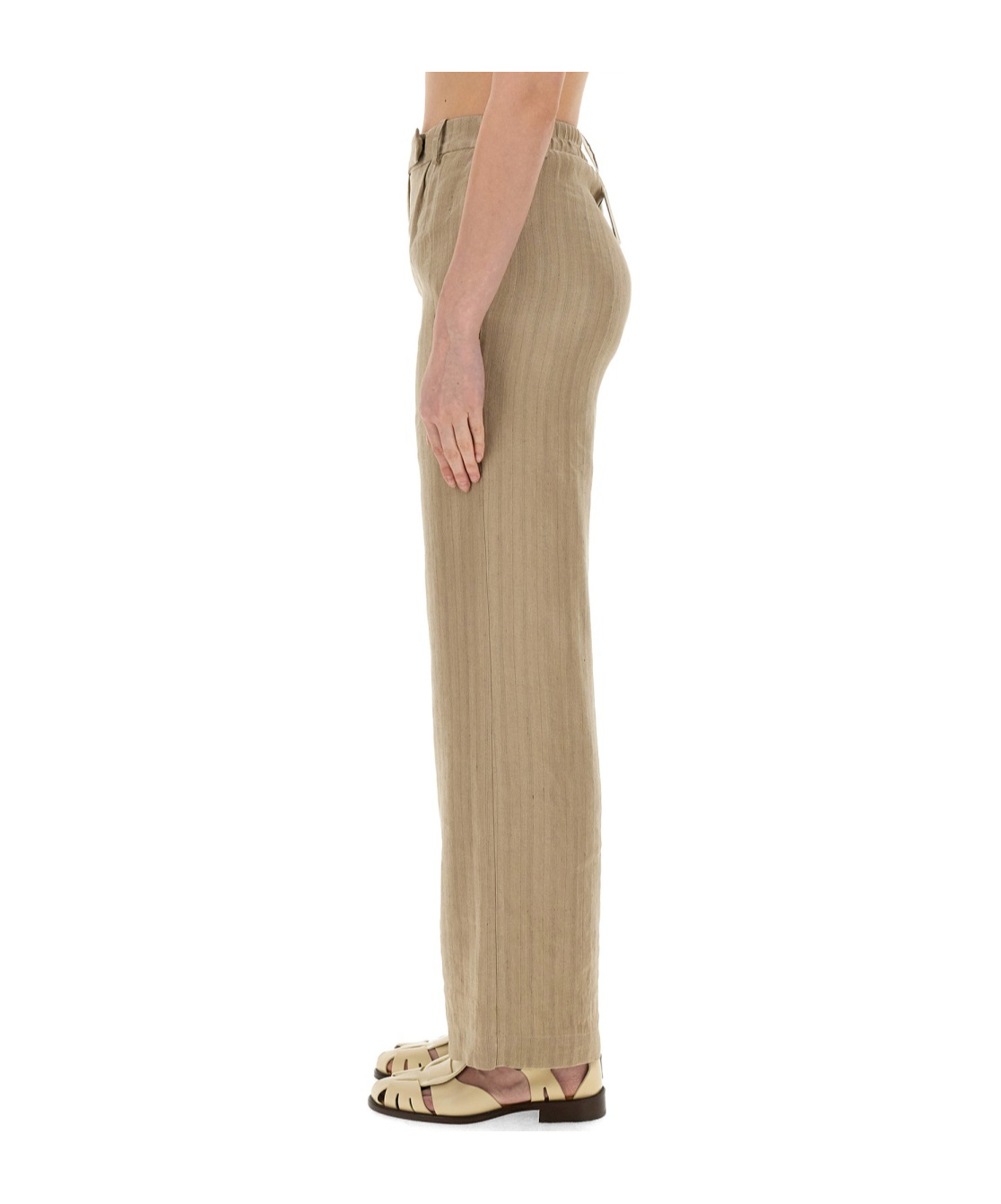 - Refined wide-leg linen pants made in Italy - Luxurious, relaxed fit - Subtle vertical stripe pattern - Soft texture fabric - Button closure - Back pocket for functional elegance - Ideal for casual outings and chic gatherings