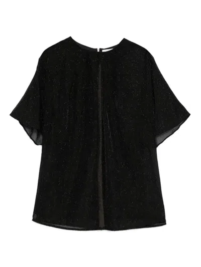 ALYSI Metallic-threaded Short-sleeve Blouse In Black