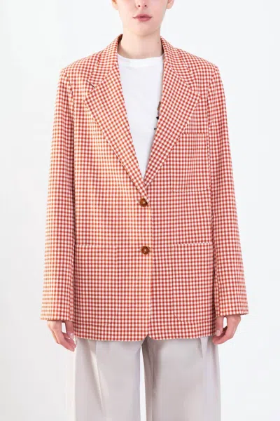 Tailored to perfection, this blazer will be your go-to jacket for years to come.Quintessential blend of elegance and versatility. Long-sleeve blazer, crafted in 56% cotton and 44% silk. Showcases a microcheck gingham pattern for a polished yet playful look. Made in Italy. Features a tailored cut with a relaxed fit. Complete with wide lapels and front patch pockets. Designed with a button closure and a collar neckline. Promises to be your go-to spring jacket.