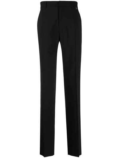 Black wool-blend trousers, dart detailing, two rear welt pockets, two side inset pockets, belt loops, hook and zip fly fastening, straight leg, tailored cut Composition: Virgin Wool, 54% , Polyester, 45% , Spandex/elastane, 1%