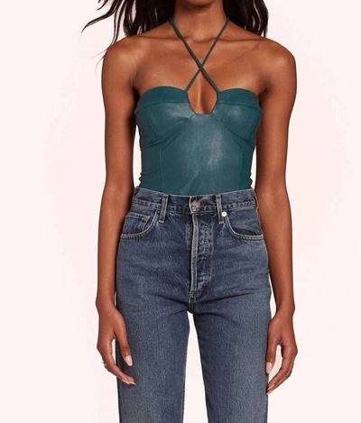 Amanda Uprichard Greca Bodysuit in Dark Green. - size XS (also in L, M, S) Amanda Uprichard Greca Bodysuit in Dark Green. - size XS (also in L, M, S) Self: 55% viscose 45% polyurethane Combo: 96% polyester 4% spandex Lining: 100% polyester Liner: 100% cotton. Made in China. Dry clean only. Hidden back zipper closure. Crisscross halterneck tie straps. Padded bust. Gusset snap button closure with thong back. AMAN-WS947. SLSX-4783. The Amanda Uprichard brand begins with Amanda. Born and raised in Florida, Amanda moved to New York City with a goal of having a creative and exciting life in fashion. After attending Parsons School of Design, Amanda's vision evolved as she drew inspiration from the fast-paced Manhattan lifestyle. Her namesake brand officially launched in 2008 - a luxe clothing line for women inspired by the independent, trendy woman on-the-go. Her use of intricate details, feminine silhouettes and bold hues defines the brand for what is - a celebration of sexy, feminine, fun.