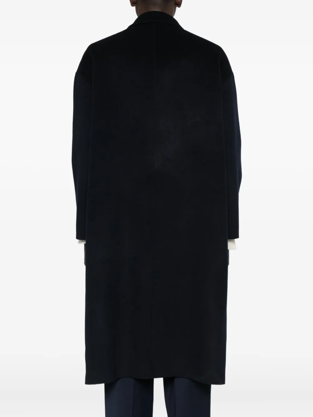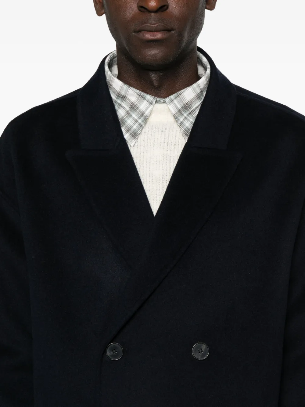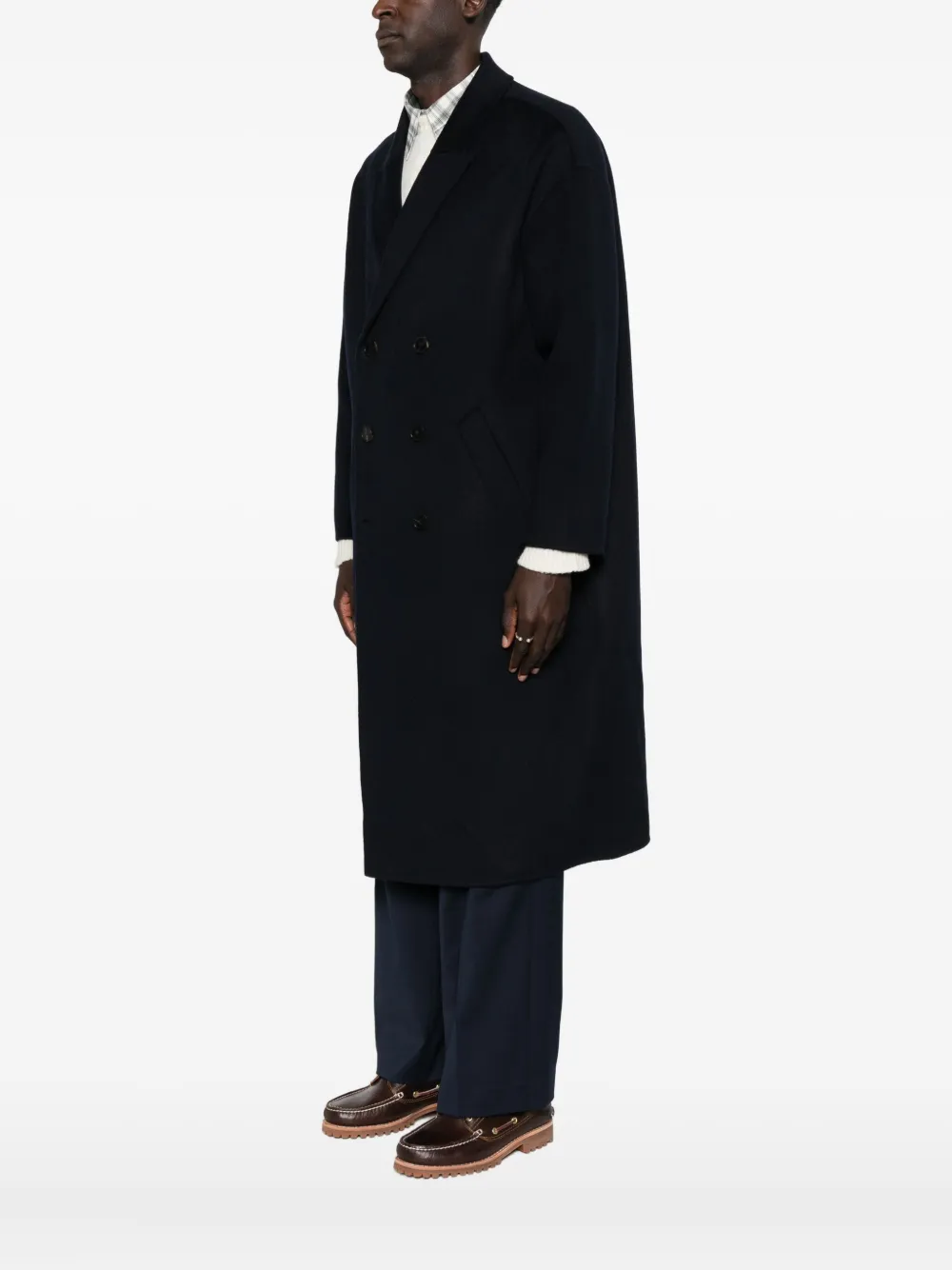 blue double-breasted button fastening peak lapels long sleeves side welt pockets