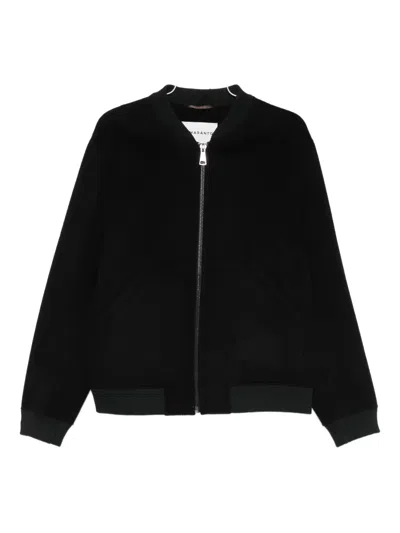 black zip fastening ribbed hem ribbed cuffs welt pocket round neck
