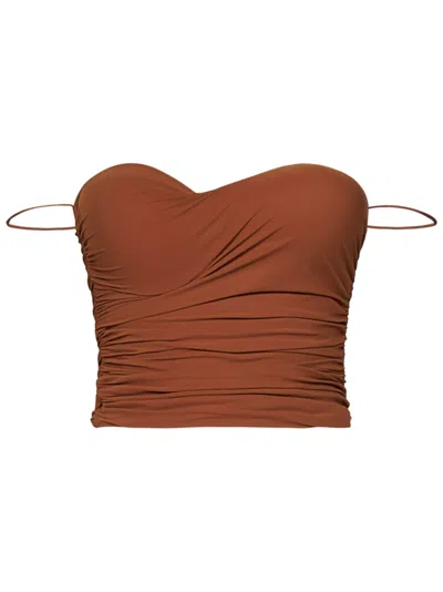 AMAZUÌN Amazuin Draped Bustier Top In Caramel Stretch Jersey In Brown