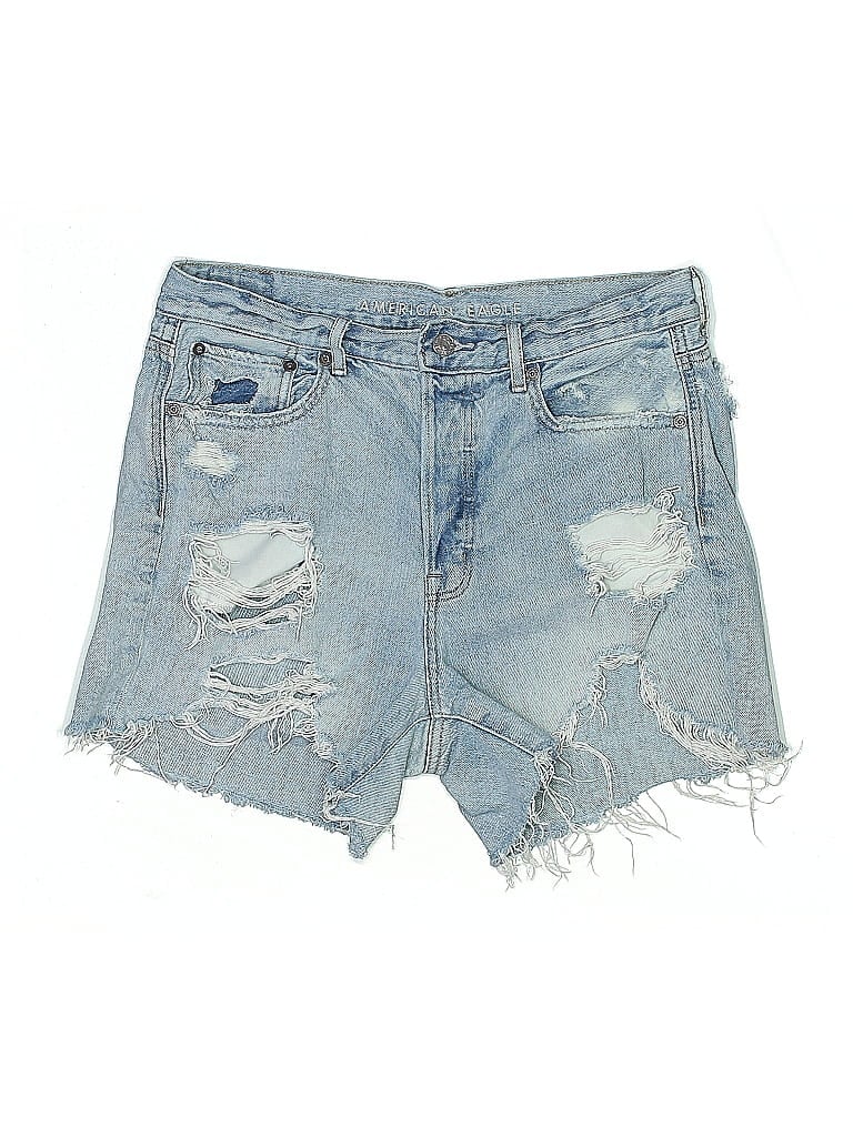 American Eagle Outfitters Denim Shorts, Size: 8. Item Details: Blue, Distressed Wash, Mid/Reg Rise, Women's Bottoms, 100% Cotton
