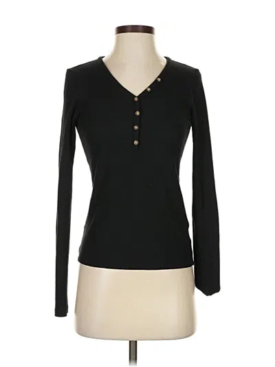 American Eagle Outfitters Long Sleeve Henley, Size: Small. Item Details: Black, Open Neckline, Women's Tops, Polyester/Viscose/Elastane