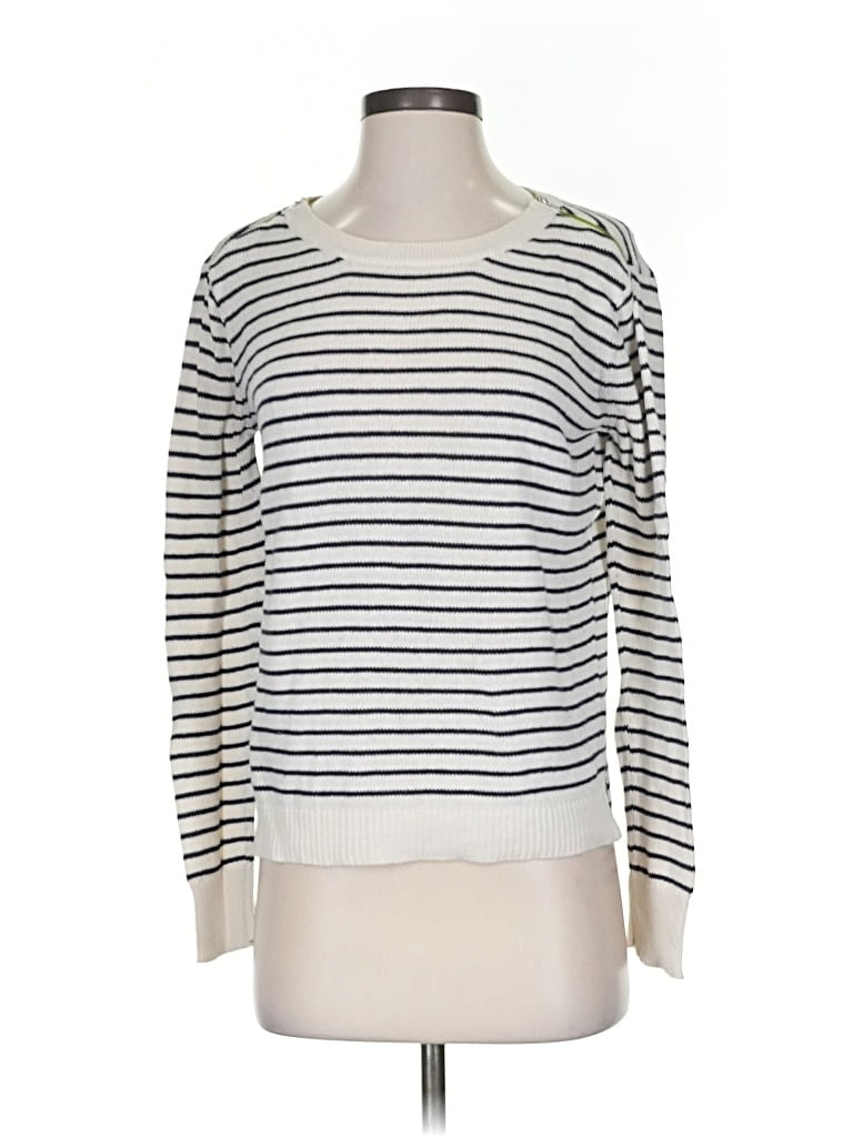 American Eagle Outfitters Pullover Sweater, Size: X-Small. Item Details: White, Stripes Pattern, Boatneck, Long Sleeve, Women's Tops, 100% Cotton