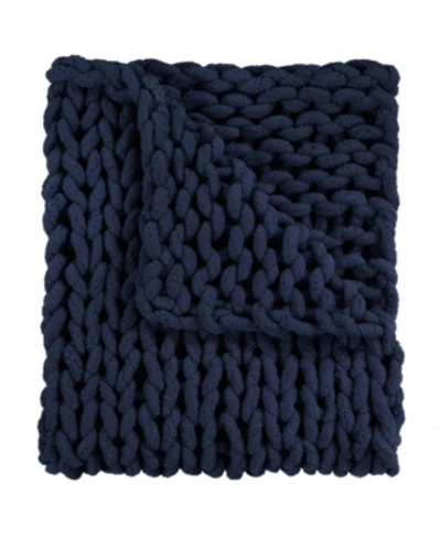Chenille Knitted Throw, 40" X 50" In Navy