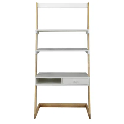 Crisp and clean, our Freestanding Ladder Desk is a progressive approach that combines modern design with classic functionality. The two tone design balances the white center with the natural texture of solid American maple side beams to form an elegant duo. The 2 top shelves provide plenty of space to organize your workspace or showcase your photos and decor. The spacious lower desk is perfect for all things producitvity and sits atop a lower shelf and drawer. A bright and sophisticated storage solution for apartments, bedrooms, offices, and more. Made with solid wood and solid American maple beams for natural beauty and durability that can withstand constant use.