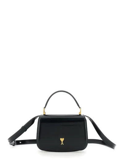 Ami's Top Handle Paris Bag exudes timeless elegance with its structured silhouette made from premium calf leather. The glossy black finish and minimalist design ensure versatility, making it a perfect match for various outfits. Sophisticated gold hardware enhances its appeal, while the top handle allows for easy carrying. A detachable shoulder strap adds practicality to this stylish accessory.- Composition: 100% calf leather - Color: Black - Exclusivity: Limited collection