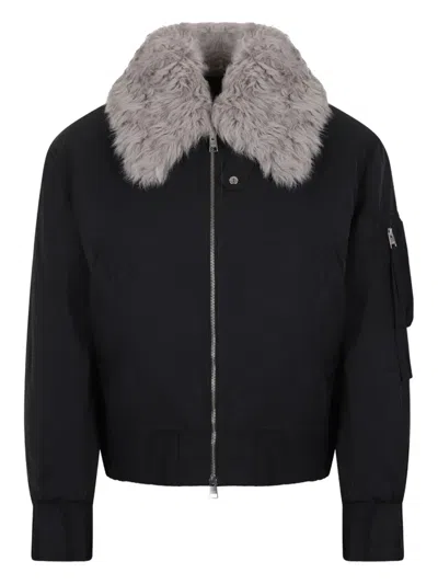 black fur collar zip fastening sleeve zip pocket elasticated hem elasticated cuffs