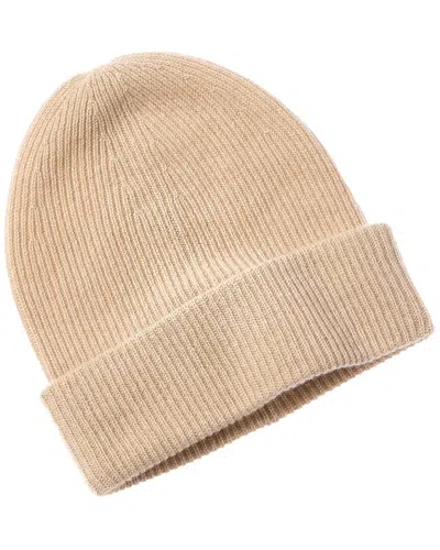 AMICALE Cashmere Rib Double Foldover Cuff Slouchy Cashmere Beanie In Brown