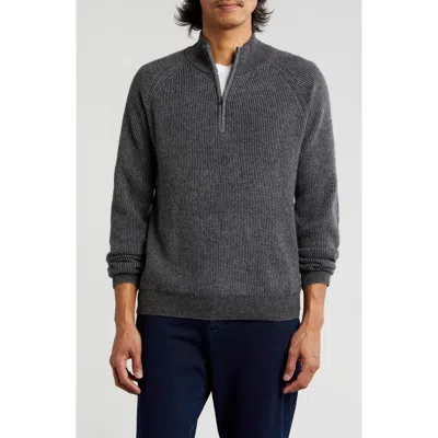 Decoratively stitched ribbing subtly enhances the ultra-soft cashmere yarns of this versatile quarter-zip pullover. 26 1/2" length (size Medium) Quarter-zip closure Mock neck 100% cashmere Dry clean Imported