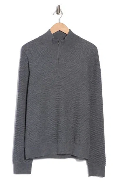 Textured Merino Wool Quarter Zip Pullover In Grey